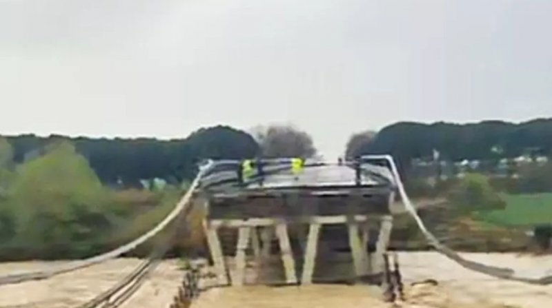 Обвал моста произошёл после того, как уровень воды в реке критически поднялся из-за проливных дождей.